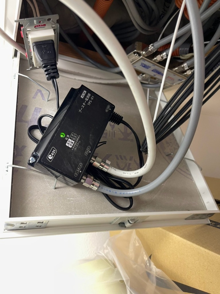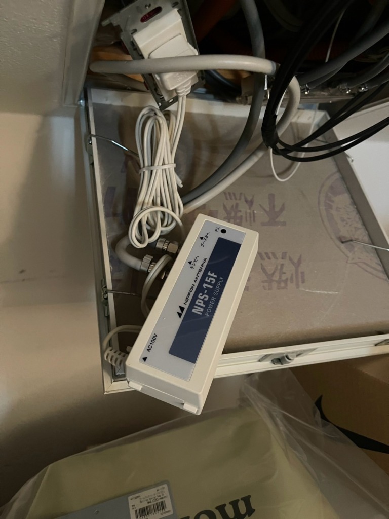 防水性が低下したケーブルから雨水がここまで伝ってきて、ブースターの電源部が故障していました。